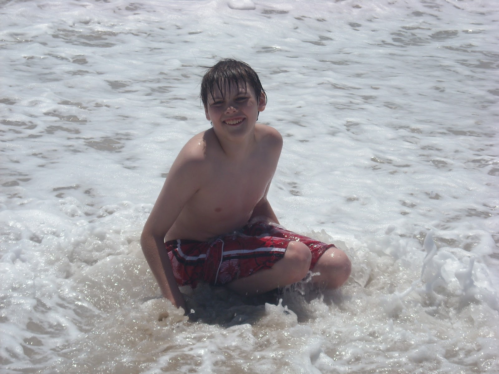 Boy, is Jones Beach really pretty! Much prettier than Coney Island! We had a grand time (though the end of the day got fairly dicey when we couldn't find the miniature golf place and then no one was there once we found it). It was a beautifully sunny day, not a cloud in the sky, and we all got sunburned. This would put a damper on our Saturday, but while we were at the beach, we loved it. There weren't that many people there, which was nice. And the water was cold, with just enough waves to make things interesting. Danny dug a hole so deep, he could fit his entire body into it! Lots of people walking along the beach had to talk to him about it, so he liked getting attention from other people than just his mom/aunt/nana who think he's the bee's knees. Danny definitely wants to go back, especially when my dad comes, and this time, we'll know where to park for the miniature golfing. I guess you can't know everything the first time around. Day three: super fun (until the sunburns).